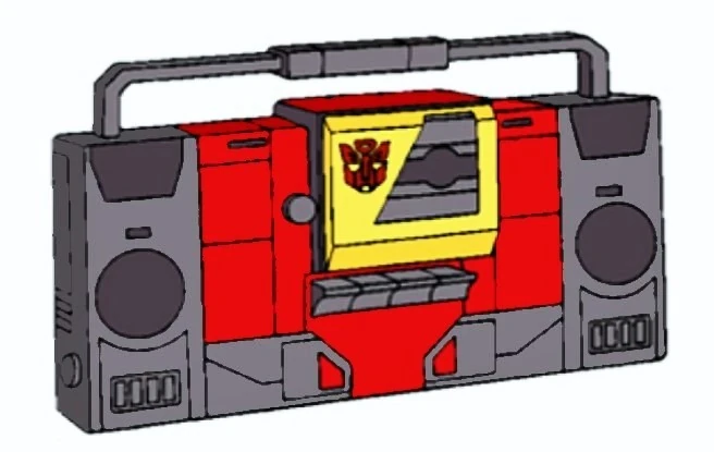 A large, boombox-inspired toy with working cassette functionality. Compatible with Autobot cassette partners like Steeljaw, Rewind, and Ramhorn.