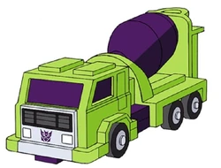 - Mixmaster transforms into a green cement mixer truck.