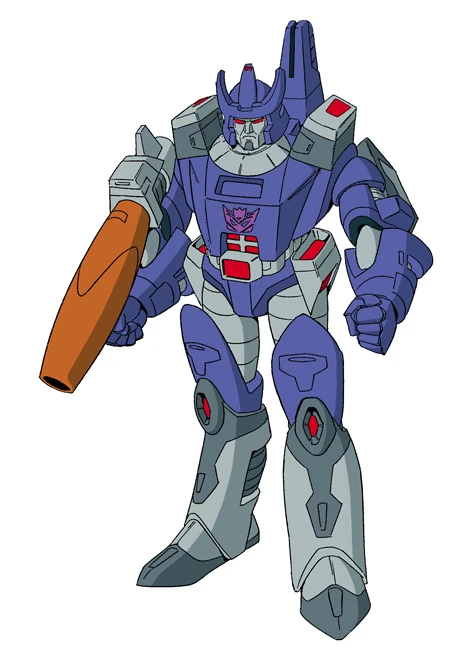 After being mortally damaged by Optimus Prime and jettisoned into space by Starscream, Megatron is discovered by Unicron. In exchange for his loyalty, Unicron rebuilds him into a new, immensely powerful form: Galvatron. He immediately asserts his authority by destroying Starscream during the latter’s coronation ceremony.