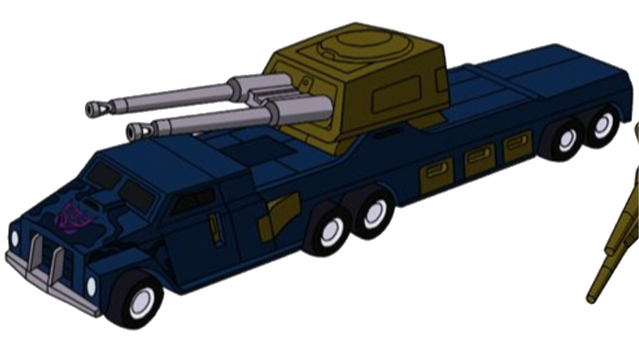 - Onslaught transforms into a military truck with twin cannons and command equipment.