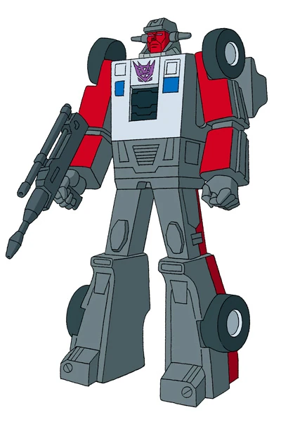 Wildrider is the unhinged, thrill-seeking Stunticon warrior, first appearing in Transformers G1 Season 2, Episode 26: “The Key to Vector Sigma, Part 1.” Transforming into a menacing gray and black Pontiac Trans Am–style car, he is known for his frenzied driving, explosive personality, and complete disregard for his own safety—or anyone else’s. As part of the Stunticons, Wildrider contributes to the formation of the mighty combiner Menasor.